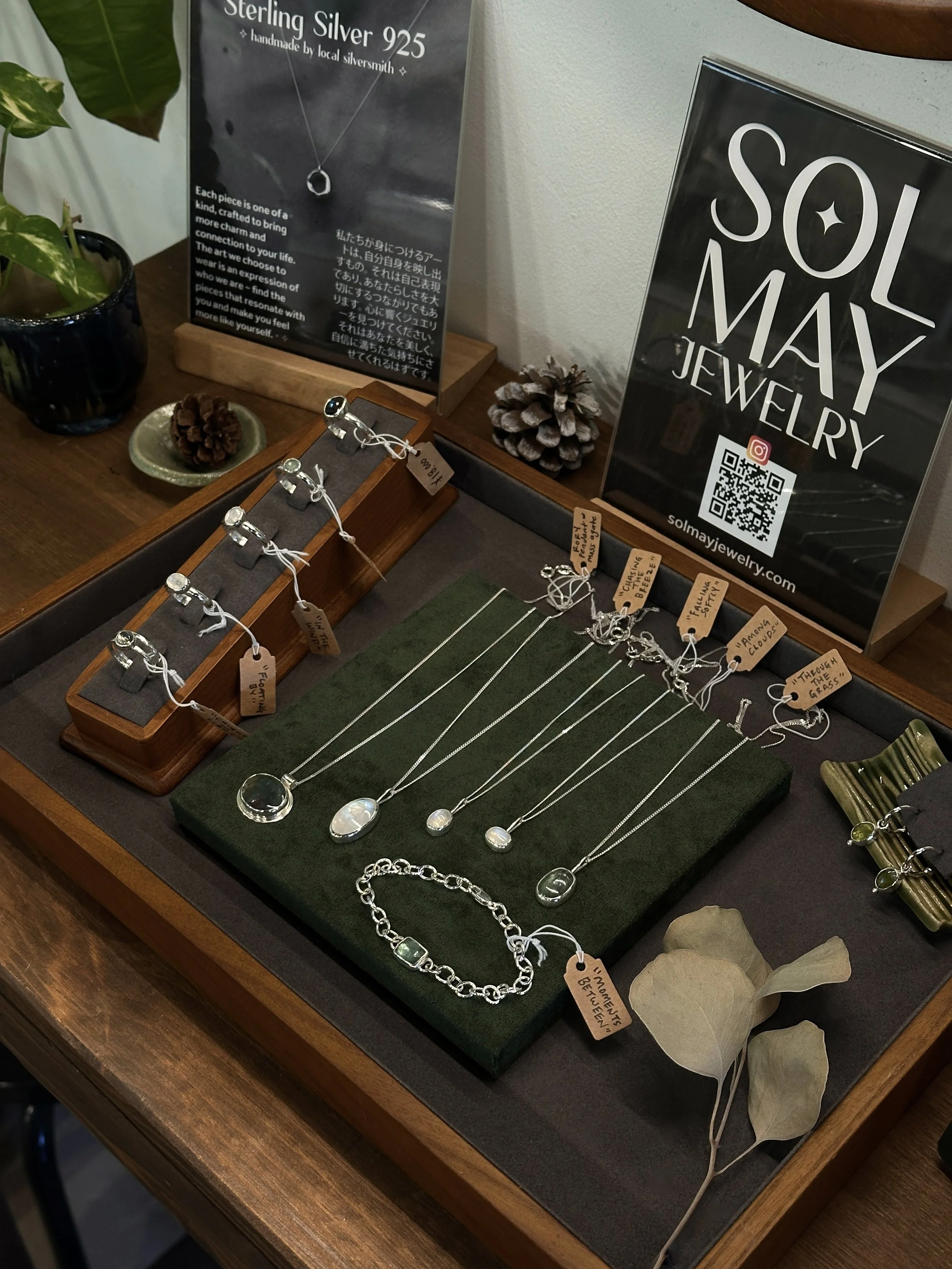 Solmay is a small jewelry studio inspired by the simple joy of making pretty things. Each piece is made with care and intention by an artist in Okinawa, with the hope it brings a bit of charm, connection, or self-expression to whoever feels drawn to it. ⋆˙⟡